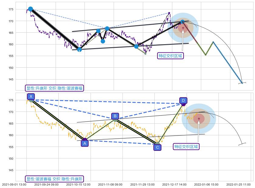 ➢ 谐波赛福:c上拉到达d:猜想下沉 → 下跌 →【拐点】强阻力临近 → 大趋势均值回复
