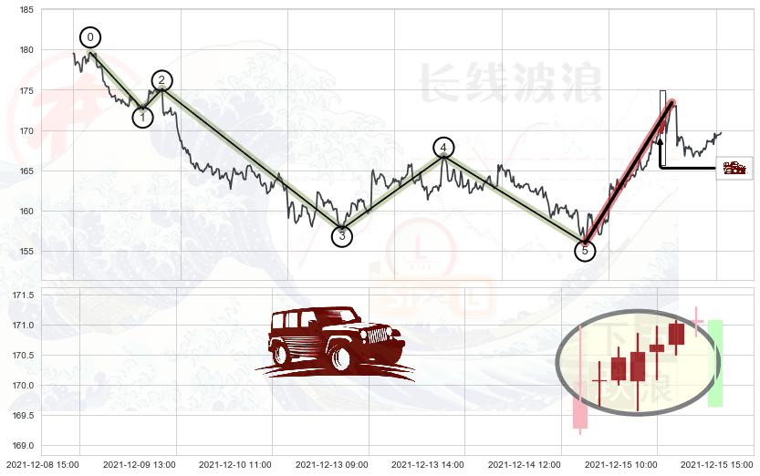 ➢ 🕰 价格走势在2021-12-14 14:00:00至2021-12-15 11:00:00期间形成低档五阳线,残存影响值:1.57
