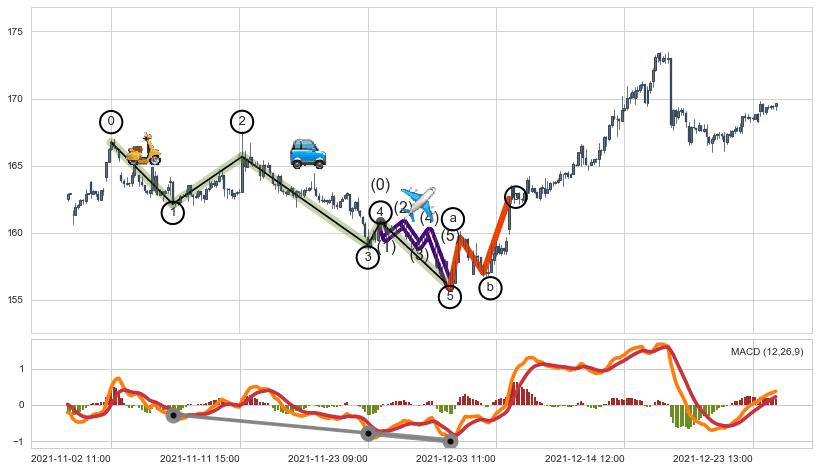 ➣ 第一, 三, 五浪下跌动能逐渐【增强变大】,趋势不断加固