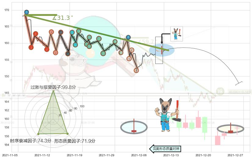 ♘ 在最后的下跌阶段2021-11-24 09:00至2021-12-21 11:00,存在 破位边缘的阻力位 ,阻力价格157.79,可信任强度67.40%,其距离最后价格158.19相差 -0.25%