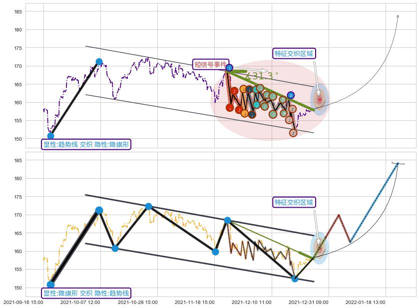 ➢ 趋势线属【短级别信号事件】降旗形属【长级别信号事件】长短周期组合信号事件, 短长事件长度比32.83%
