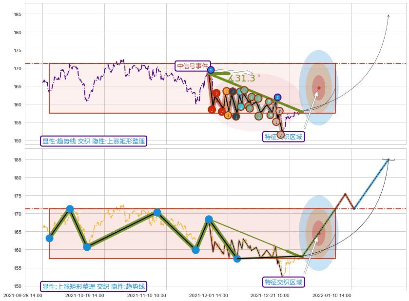 ♘ 阻力价格位163.13,可信任强度92.93%,距离最后交易2021-12-27 15:00形成的收盘价格158.19相差 +3.12%