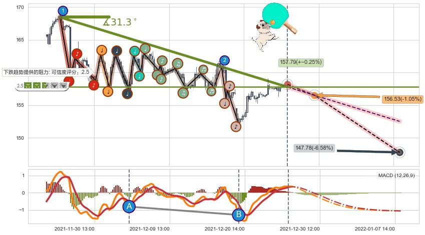 ➢ 预测:2021-12-30 09:00,【试探阻力】稳定目前下跌趋势的前提下,预测价格:156.53