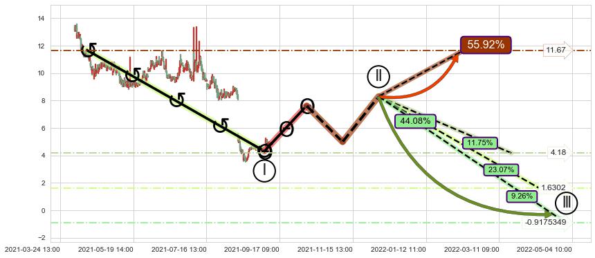 2021-05-04: 时域附近第一阻力位11.41持续的对上升趋势进行阻拦,有效放缓了上涨的速度。