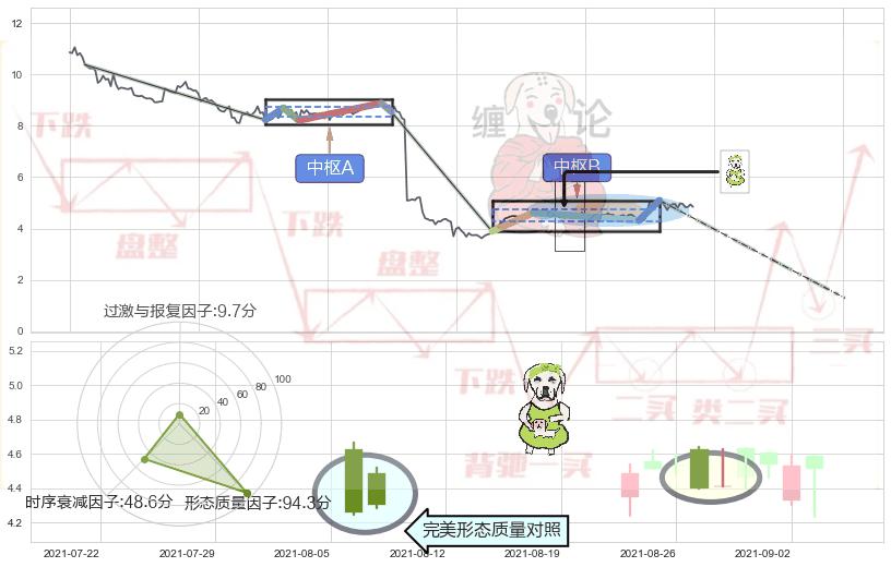 ➢ 下跌身怀六甲 🔜 缠论中枢点破位中枢B支撑下拉 综合量化分数:47.11 【中性】