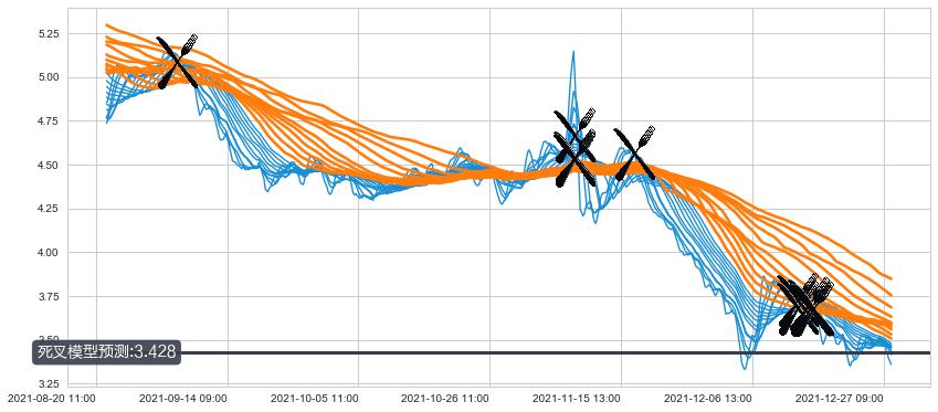 📉 多条均线基于【死叉历史模型】预测最低波谷价格的平均值: 3.428
