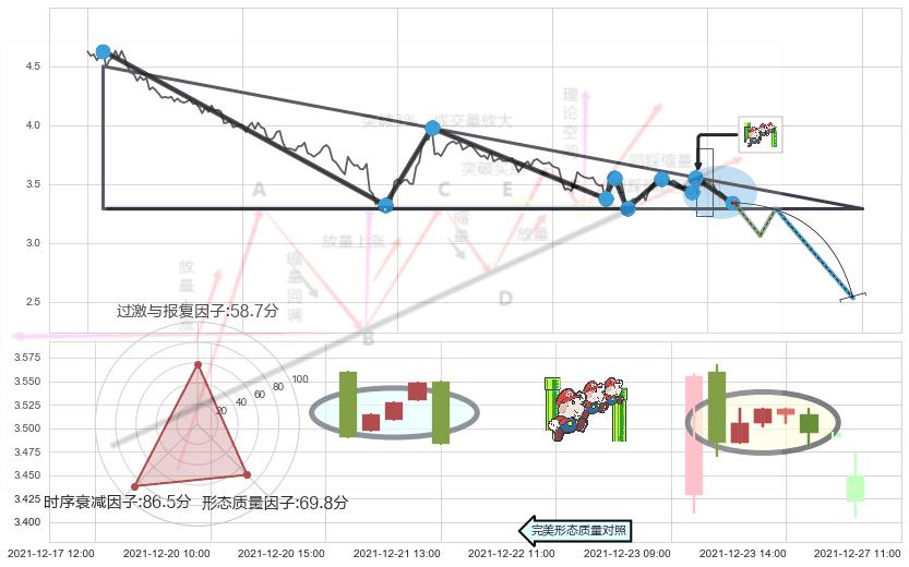 ➢ 🕰 价格走势在2021-12-23 11:00:00至2021-12-23 15:00:00期间形成下降三部曲(降势三鹤),残存影响值:-5.92