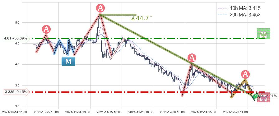 ♘ 阻力价格位4.61,可信任强度72.88%,距离最后交易2021-12-27 15:00形成的收盘价格3.340相差 +38.09%
