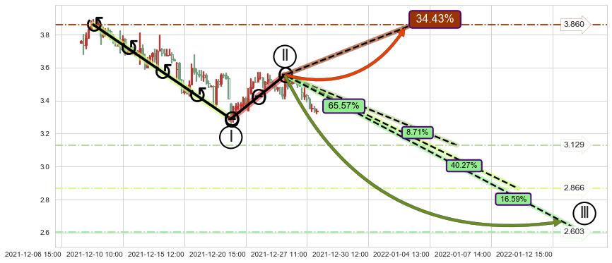 ♘ 阻力价格位3.567,可信任强度91.59%,距离最后交易2021-12-27 15:00形成的收盘价格3.340相差 +6.81%
