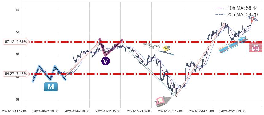 ♘ 支撑价格位57.12,可信任强度83.73%,距离最后交易2021-12-27 15:00形成的收盘价格58.66相差 -2.61%