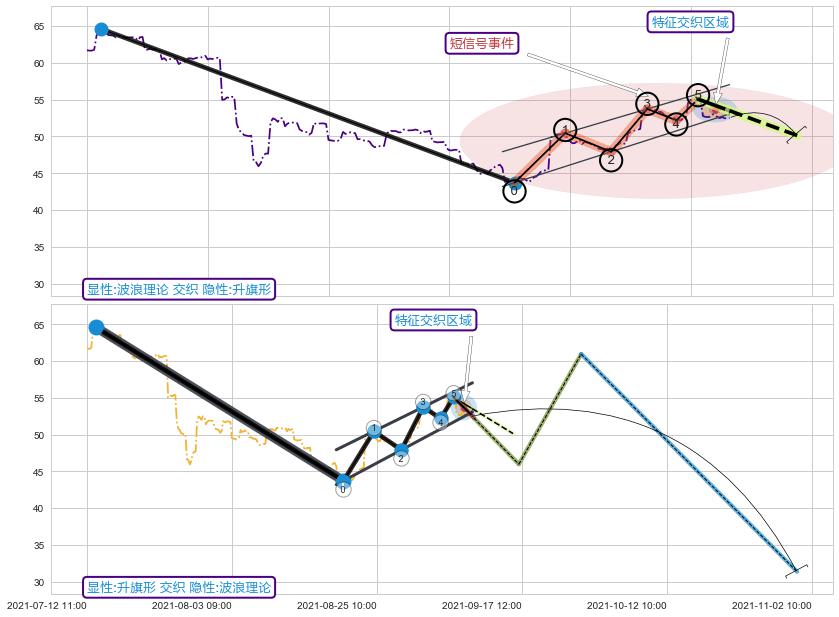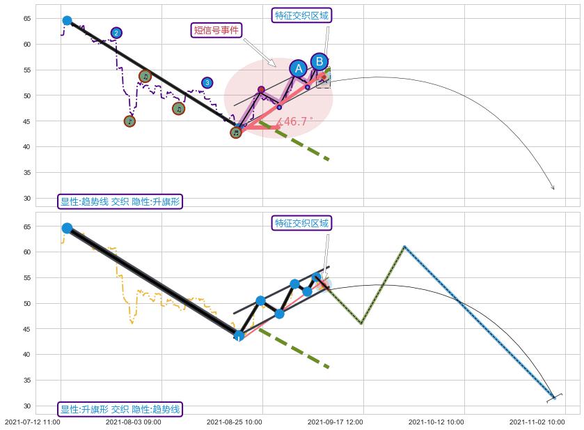 从2021-07-23 09:00至2021-08-06 11:00,共包含65个小时,阶段股价下跌-11.28%,阶段股价变动位移路程比: 1 : 5