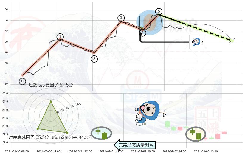 ➢ 🕰 价格走势在2021-09-03 09:00:00至2021-09-03 10:00:00期间形成下跌螺旋桨,残存影响值:-5.42
