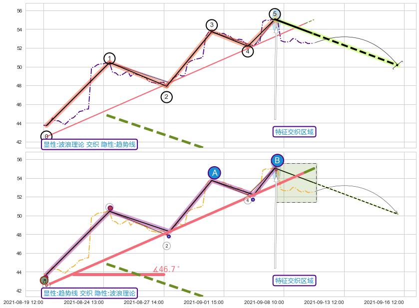 ➢ 波浪理论与趋势线信号事件周期长度级别相同,同周期信号事件