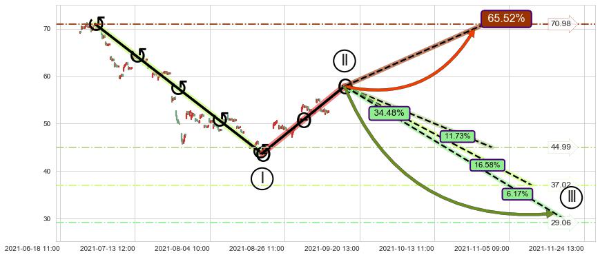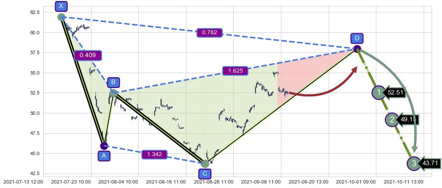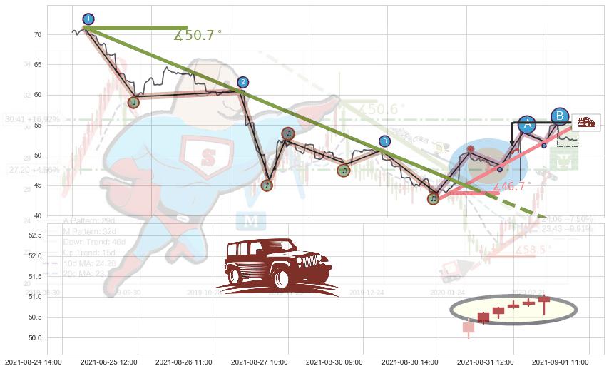 ➣ D点拟合预测价格57.95,距离最后交易收盘价格52.51相差 +10.36%