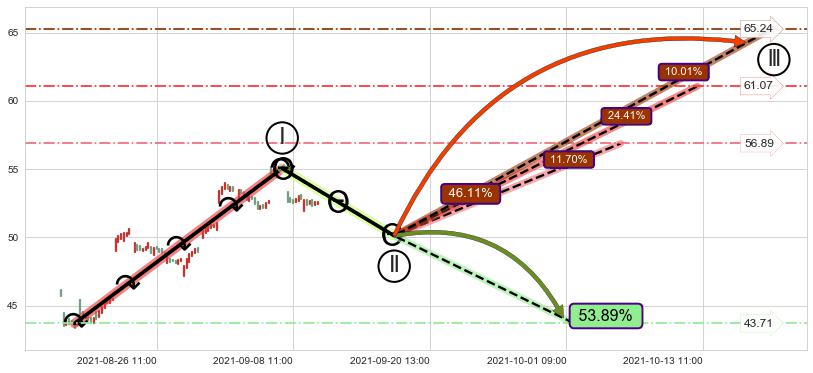 ➢ 循环浪继续向上【最高】位置(10-19:12, 65.24),匹配聚类样本比例21.70%, 可能性概率10.01%