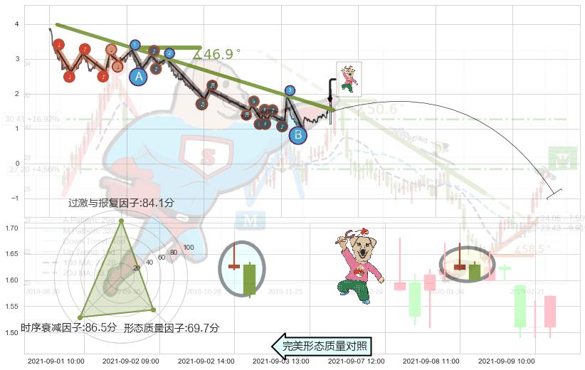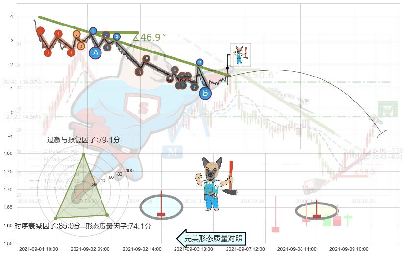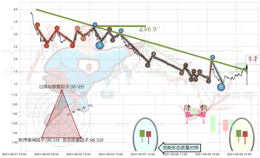 从2021-03-22 14:00至2021-08-31 10:00,共包含677个小时,阶段股价下跌-70.52%,阶段股价变动位移路程比: 1 : 14,下跌趋势角度: 46.9