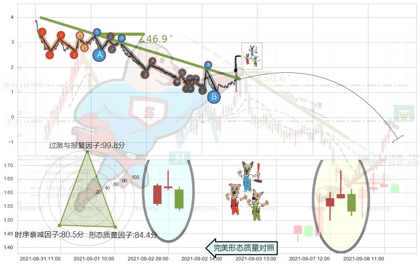 ➢ 🕰 价格走势在2021-09-08 11:00:00至2021-09-08 12:00:00期间形成射击之星形态,残存影响值:-6.03