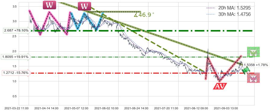 ♘ 阻力价格位1.8095,可信任强度47.66%,距离最后交易2021-09-09 14:00形成的收盘价格1.5090相差 +19.91%