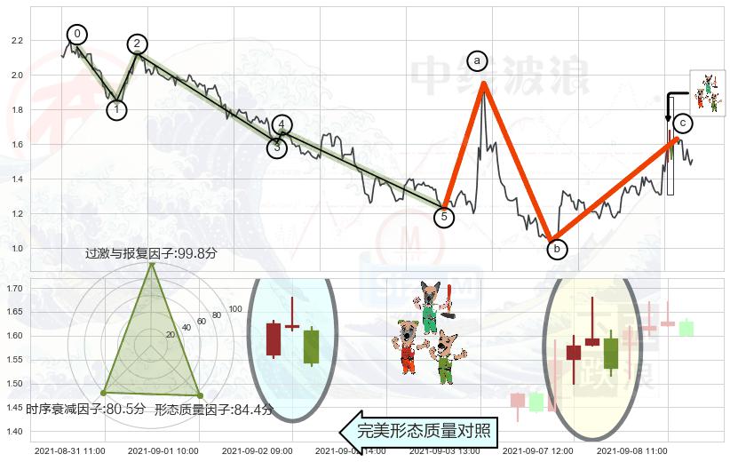 ➢ 🕰 价格走势在2021-09-09 13:00:00至2021-09-09 14:00:00期间形成双针探底,残存影响值:7.49