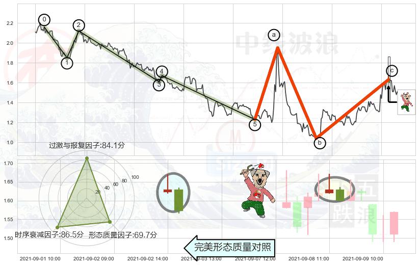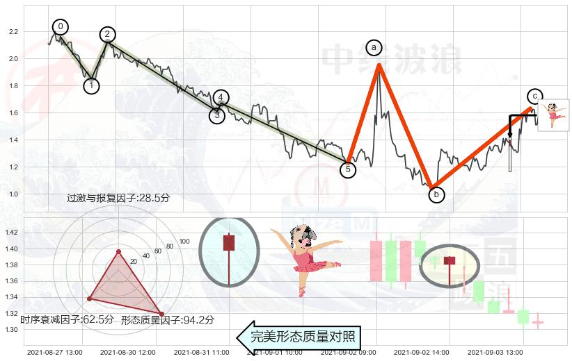 从2021-08-20 10:00至2021-09-09 14:00,共包含83个小时,阶段股价上涨42.12%,阶段股价变动位移路程比: 1 : 4