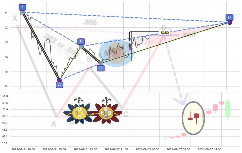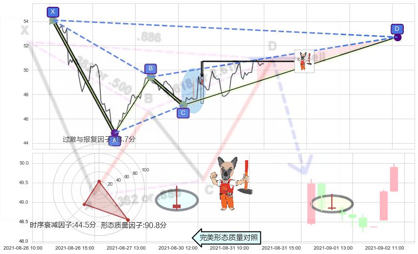 ➣ 未完成【蝙蝠】形态起点X: 08-12:13, 已到达C点: 08-30:14, 预测最终D点: 09-27:09, 共198交易小时