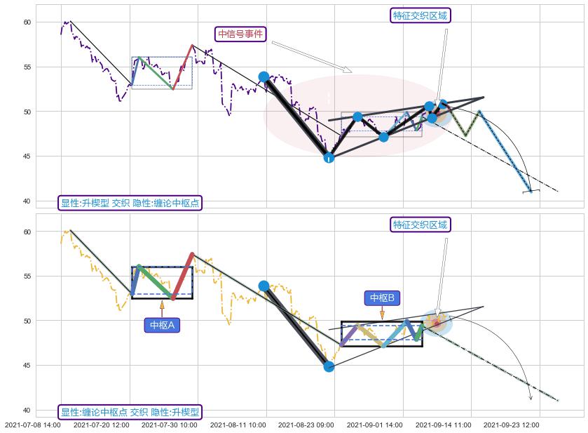 ➣ 缠论中枢点:猜想破位中枢B后持续下拉 → 下跌 → 破位中枢B支撑 → 持续趋势跟踪