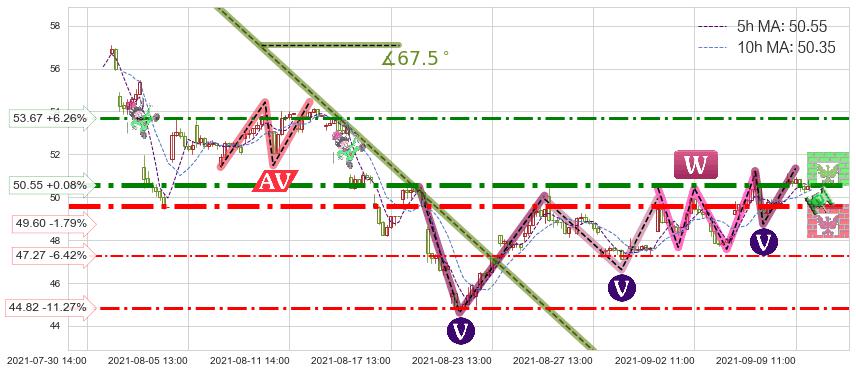 ♘ 阻力价格位50.55,可信任强度87.75%,距离最后交易2021-09-09 15:00形成的收盘价格50.51相差 +0.08%