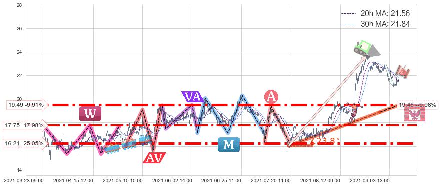 ♘ 支撑价格位19.49,可信任强度86.94%,距离最后交易2021-09-09 14:00形成的收盘价格21.64相差 -9.91%