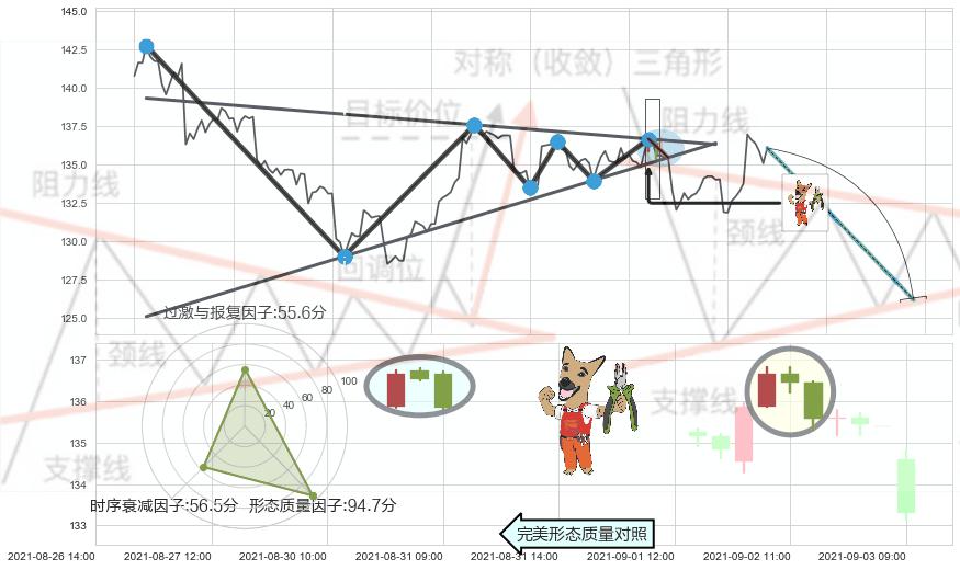 ➢ 【卖1】: 激进型 卖点→(09-02:15: 135.47 )形成突破下降【对称】三角形整理【整理】形态