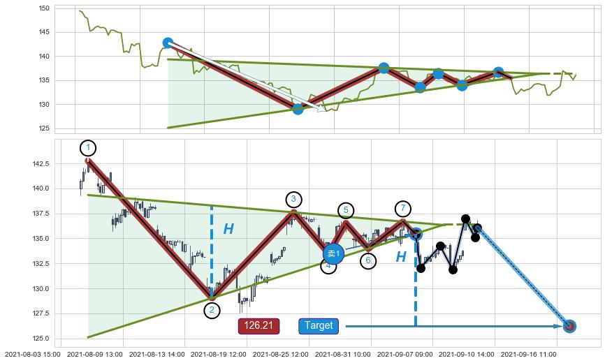 ➣ 【已确认突破】最后价格:136.09与最小【整理】第一目标价格→(09-17:09: 126.21 )相较: 下跌空间【较大】