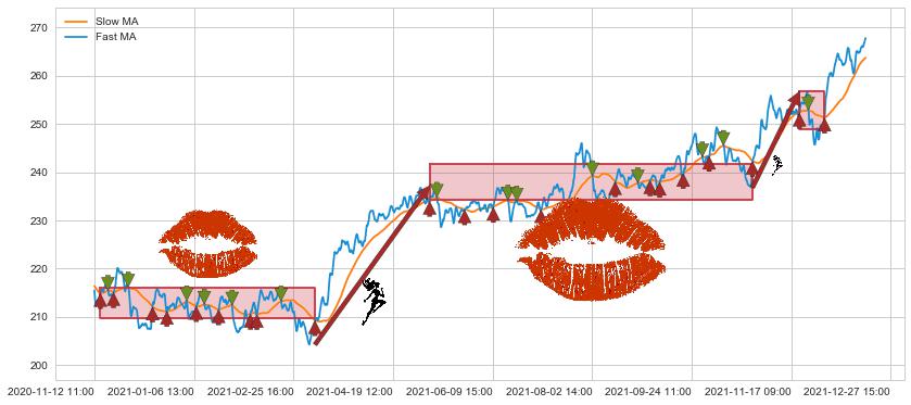 11-22 09:00至12-06 10:00 慢线与快线多次接触,存在上下穿越,有缠绕