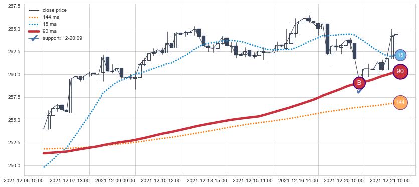 ➣ 90小时均线于(12-03 15:00: 251.31)形成【金叉】基于【金叉历史模型】预测金叉后最高波峰价格: 256.24, 金叉后最高价格268.23,已经上涨超出预测最高波峰价格, 预期回调