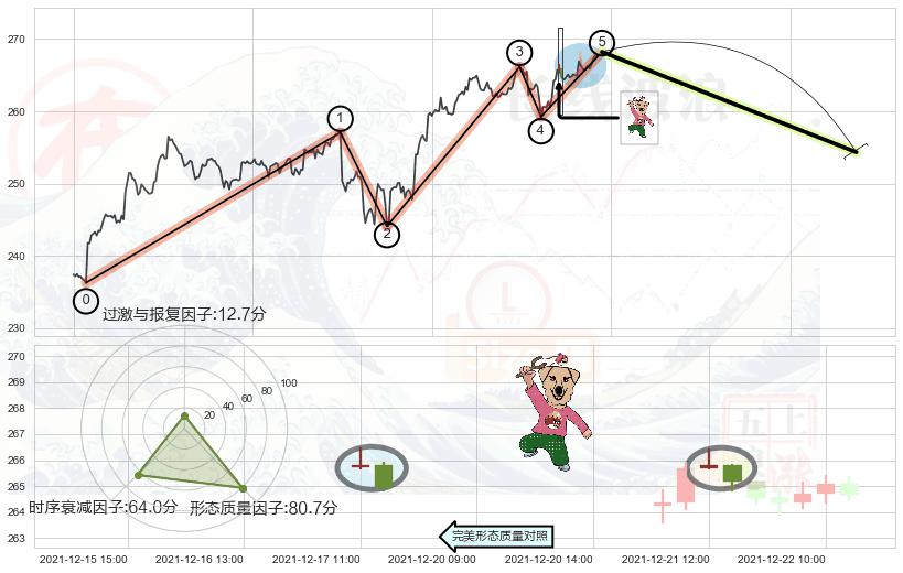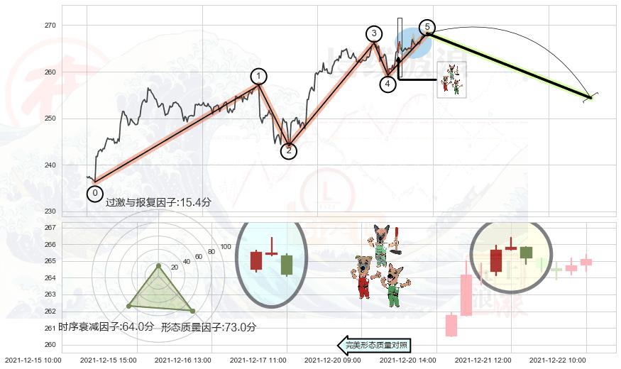 ➢ 🕰 价格走势在2021-12-21 00:00:00至2021-12-22 00:00:00期间形成顶部尽头线(下山虎),残存影响值:-4.64