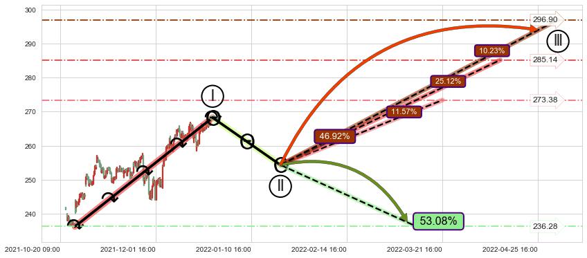 ➣ 循环浪继续向上【平均值】位置(04-12:09, 285.14),匹配聚类样本比例53.54%, 可能性概率25.12%