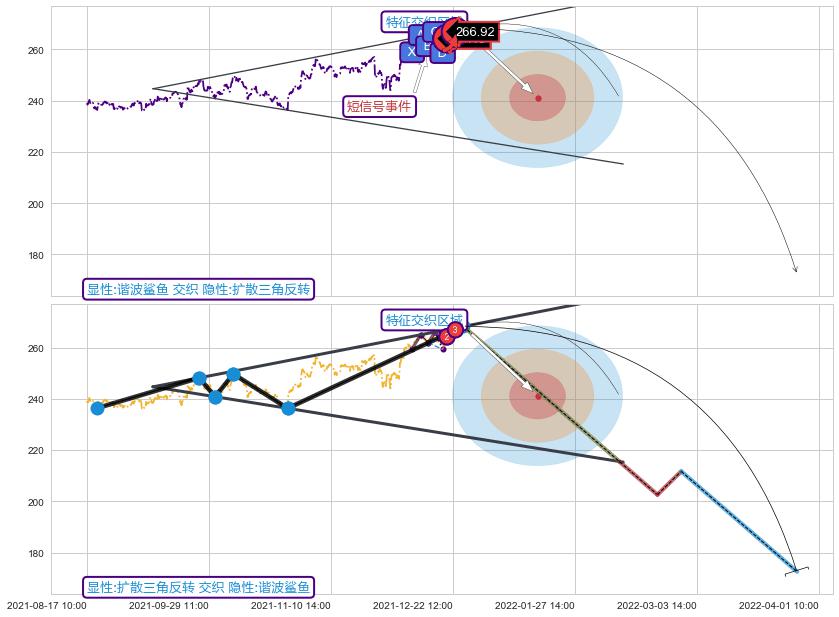 ➣ 扩散三角反转:猜想临近关键支撑位突破点 → 临近拐点下跌 → 风险信号 → 大趋势均值回复