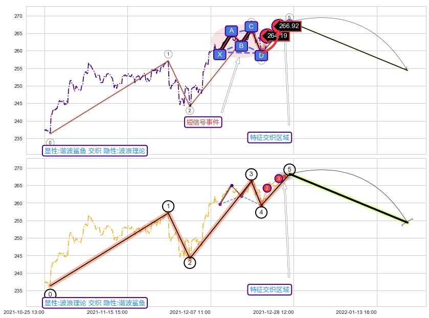 ➢ 谐波鲨鱼属【短级别信号事件】波浪理论属【长级别信号事件】长短周期组合信号事件, 短长事件长度比17.65%