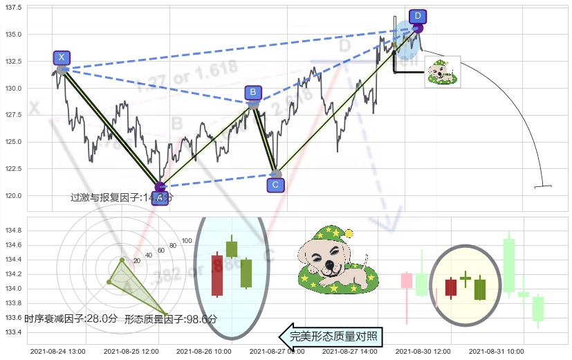 ➣ 谐波蝴蝶:已到达d点:猜想c拉升到达d点后泄力性下沉下跌(均值回复)