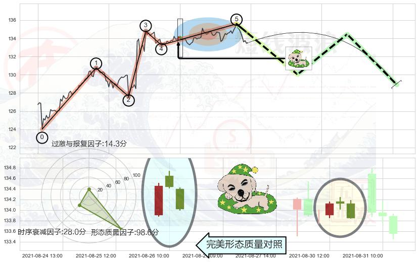 ➢ 🕰 价格走势在2021-08-31 14:00:00至2021-08-31 15:00:00期间形成顶部尽头线(下山虎),残存影响值:-3.38