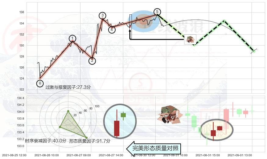 ➣ 顶部尽头线(下山虎) + 波浪理论上涨浪:浪5回调拐点信号叠加后【反向回撤率】偏高,【看空】信号叠加【存续影响降权】