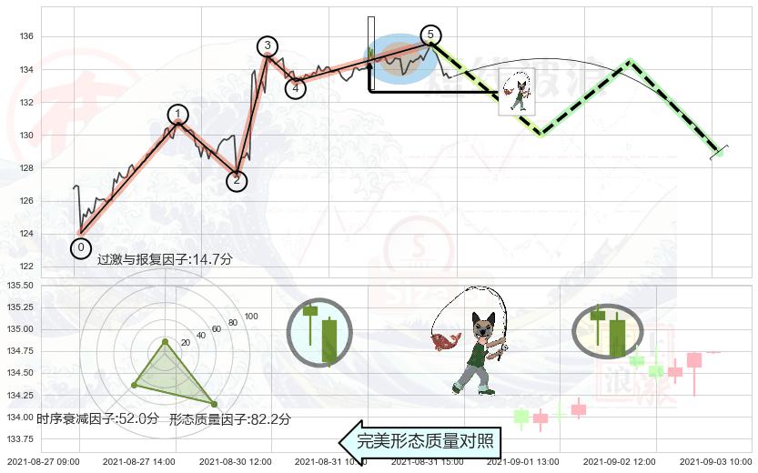➢ 🕰 价格走势在2021-08-30 12:00:00至2021-08-30 14:00:00期间形成黄昏之星(夜星),残存影响值:-1.23