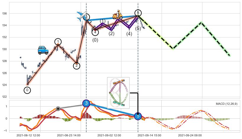 ➣ AI预测: 假定反转启动后, 第❸目标位置(09-14:15, 135.58)
