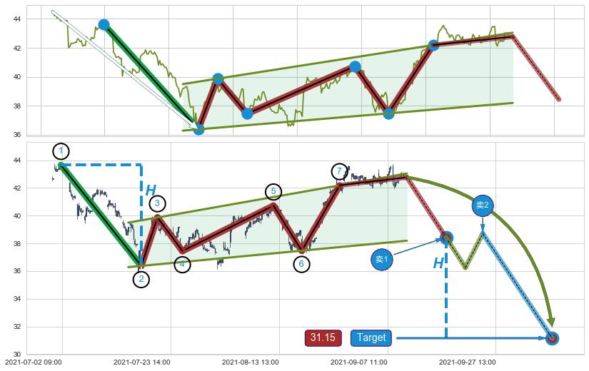 ➣ 最小中继整理跌幅→𝐇: 7.28 (𝐇旗杆的长度:旗杆起点→顶点)