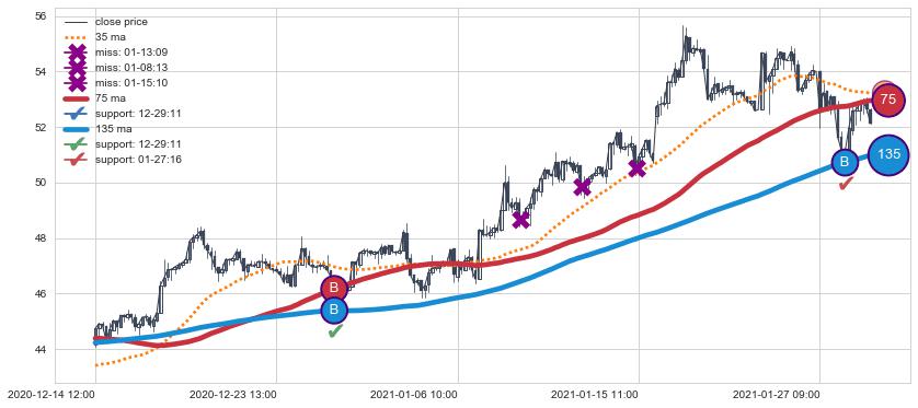 👍 尚未达到多条均线预测的最高波峰价格的平均值, 预期继续上涨