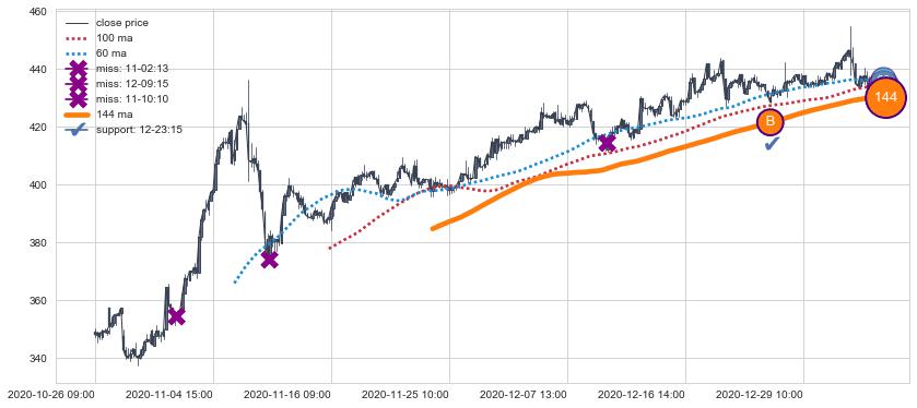 📝 多条均线形成死叉后走势最低价格达到: 652.84