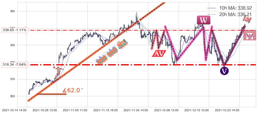 ➣ 【仅预测突破】最后价格:342.45与预测突破价格:318.90→【空间较大】后续最小【反转】第一目标价格→(01-21:14: 290.07 )