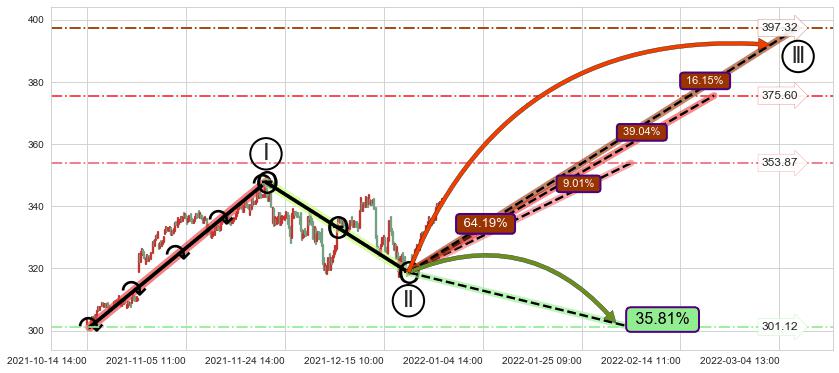 ➢ 循环浪继续向上【最高】位置(03-09:10, 397.32),匹配聚类样本比例25.15%, 可能性概率16.15%