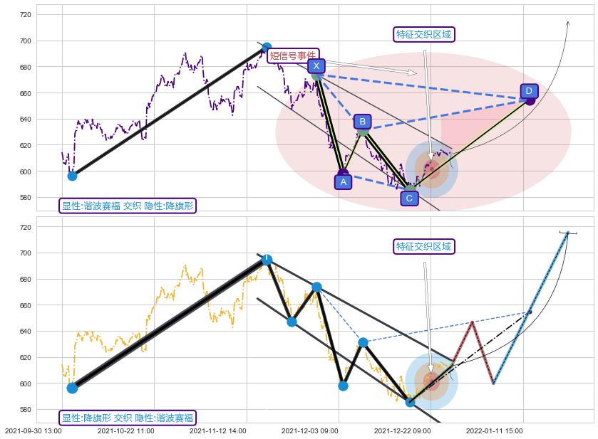 ➢ 谐波赛福属【短级别信号事件】降旗形属【长级别信号事件】长短周期组合信号事件, 短长事件长度比35.84%