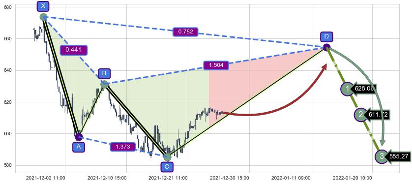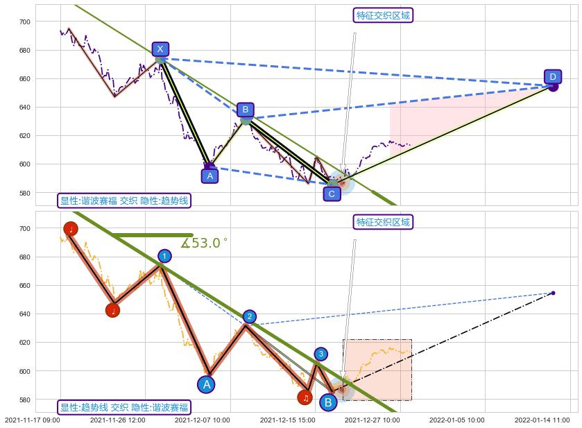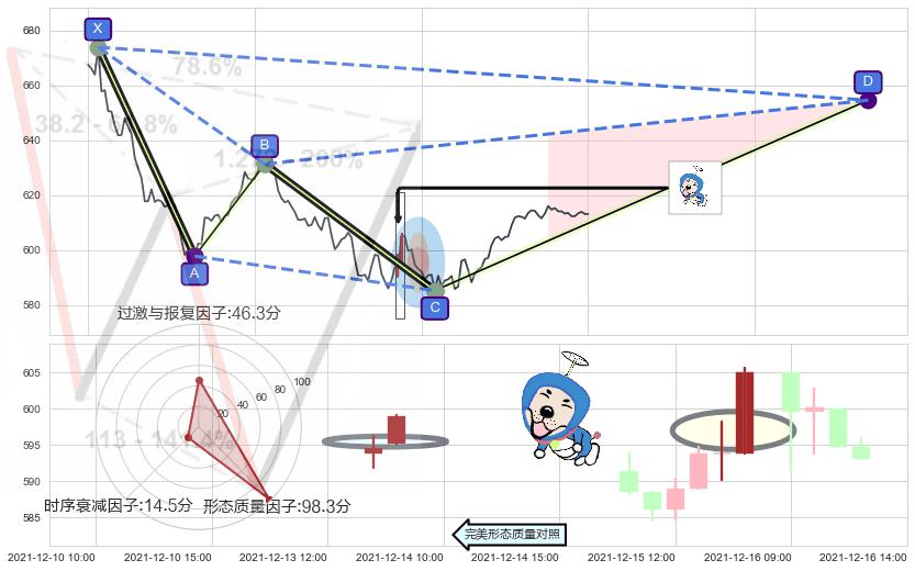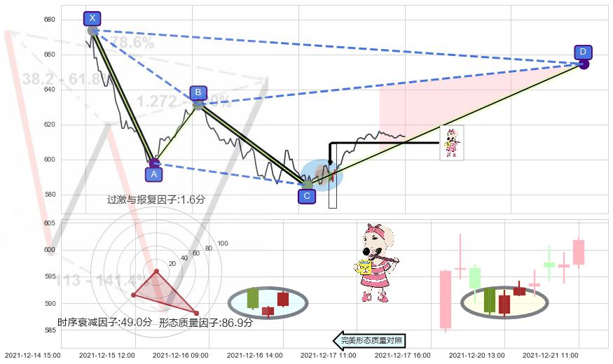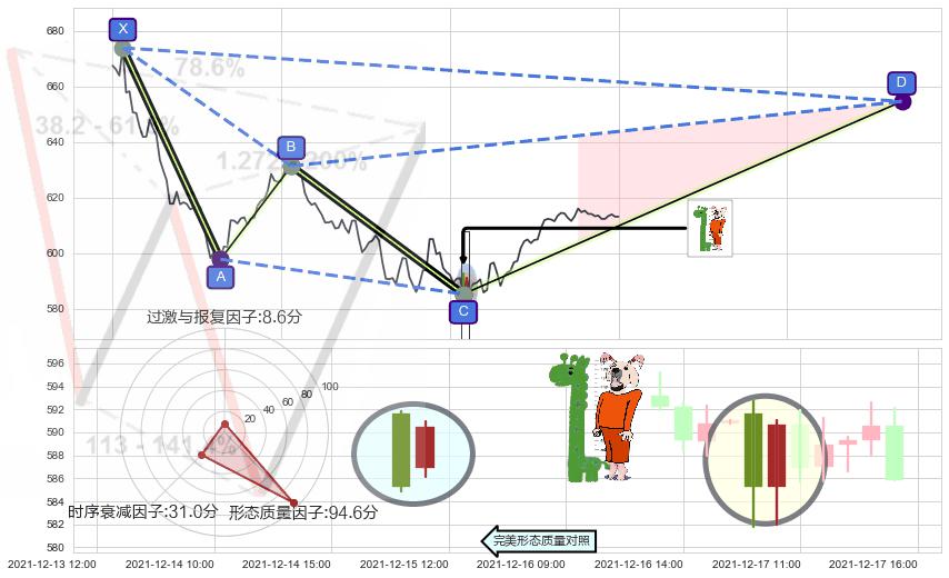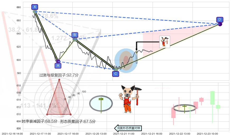 ➣ D点拟合预测价格654.52,距离最后交易收盘价格613.12相差 +6.75%