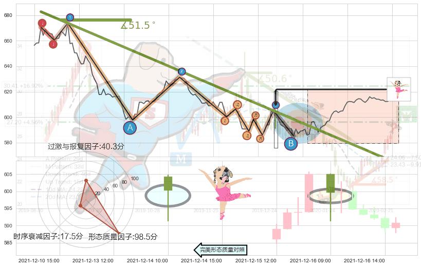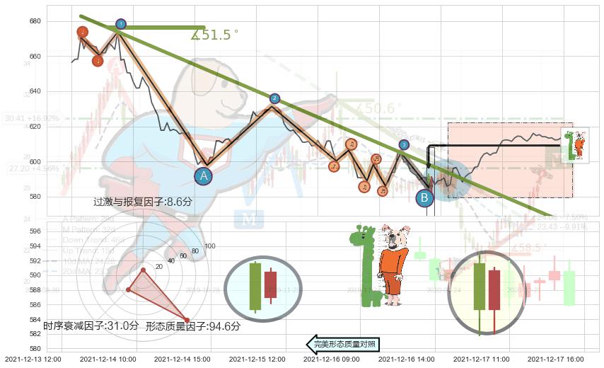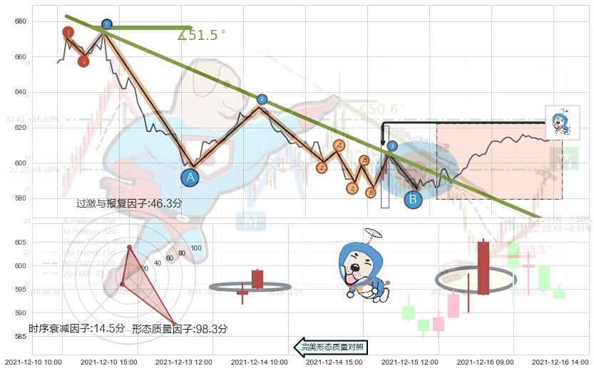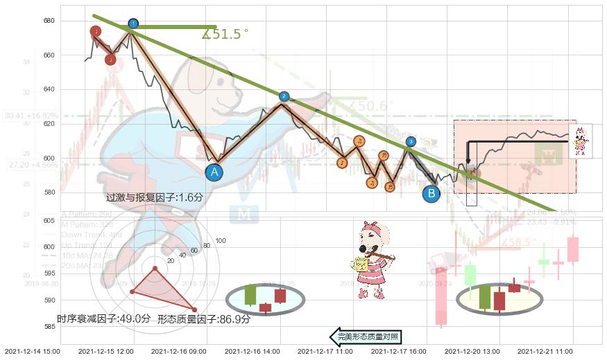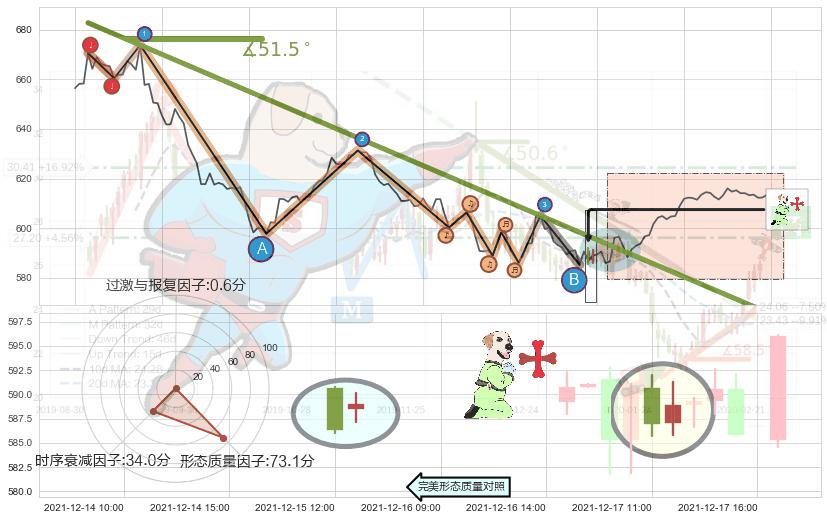➢ 2021-11-26 09:00-2021-12-17 16:00下跌趋势存在反转上涨[机会],其原下跌趋势的阻力位(563.92)已被突破[强支撑信号],原下跌趋势角度: 51.5˚