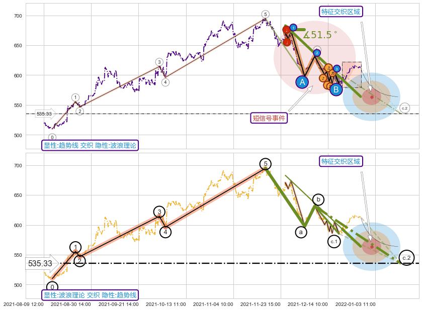 ➢ 趋势线属【短级别信号事件】波浪理论属【长级别信号事件】长短周期组合信号事件, 短长事件长度比19.17%